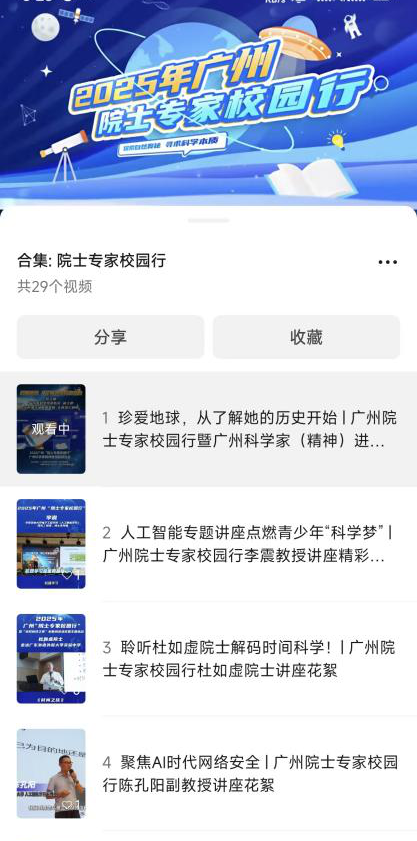 线上,市科协拓展“屏对屏”传播效能。充分运用现代信息技术,对部分精品讲座进行线上同步直播,例如依托《中华人民共和国科学技术普及法》新修订后的首个广州市全国科普月活动,对陈新滋院士的讲座进行实时直播,实现了优质资源的全域共享。通过“科普广州”等官方平台建立线上资源库,系统录制并精编讲座视频,为学校课后服务、学生自主学习提供持续支撑。此外,还将讲座精华制作成系列短视频,以轻量化、趣味化的形式在社交媒体传播,有效提升了科普内容的吸引力和普及率。