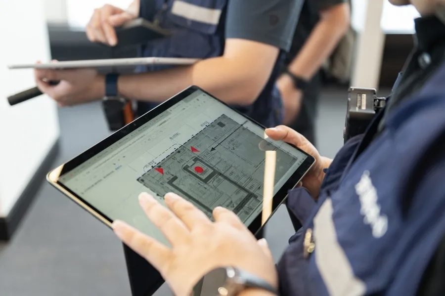 项目应用多款智能装备,打造“无人化”施工场景:智能振捣机器人适配钢密柱复杂环境,沿预设路径全自动振捣;智能塔吊与模架平台同步爬升,减少爬升成本、加快施工进度;北斗定位+自动测量机器人实时跟踪钢结构安装,实现毫米级精准定位;焊接机器人、智能升降机协同作业,兼顾效率与安全。
