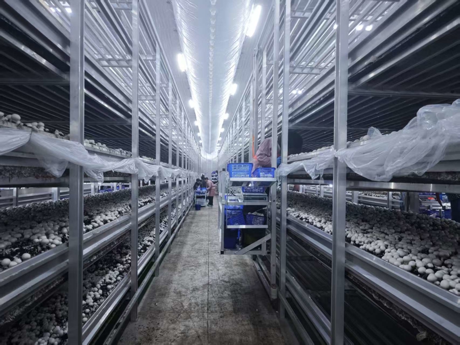 该项目引入上海联中食用菌专业合作社先进技术与管理模式,高标准规划建设10条一次发酵线、32条二三次发酵线及3栋智能化菇房,实现双孢菇培育、种植、采收全流程智能化、标准化管控。目前已处于试生产阶段,单日鲜菇产量可达6至10吨。项目全面建成达产后,预计年产值可达2.5亿元。